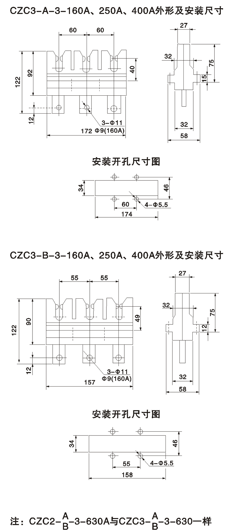 CZC3-A/B-3-160A、250A、400A一次插座
