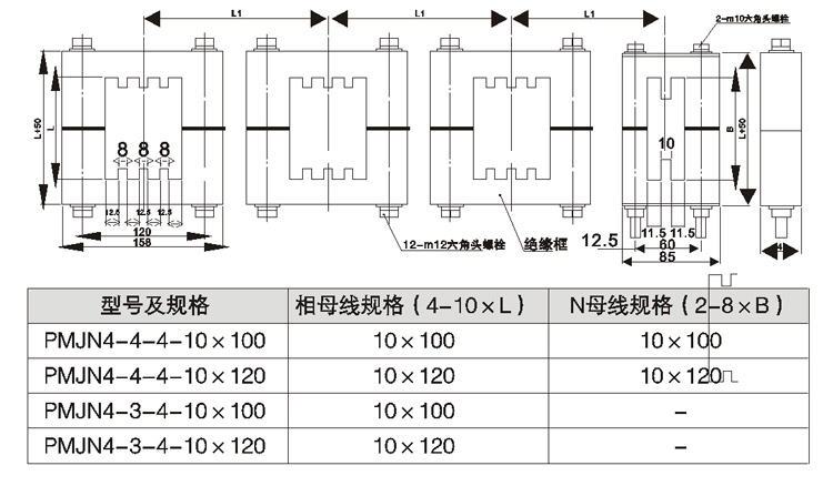 PMJ-N、四相或四拼绝缘母线框(组合型式)